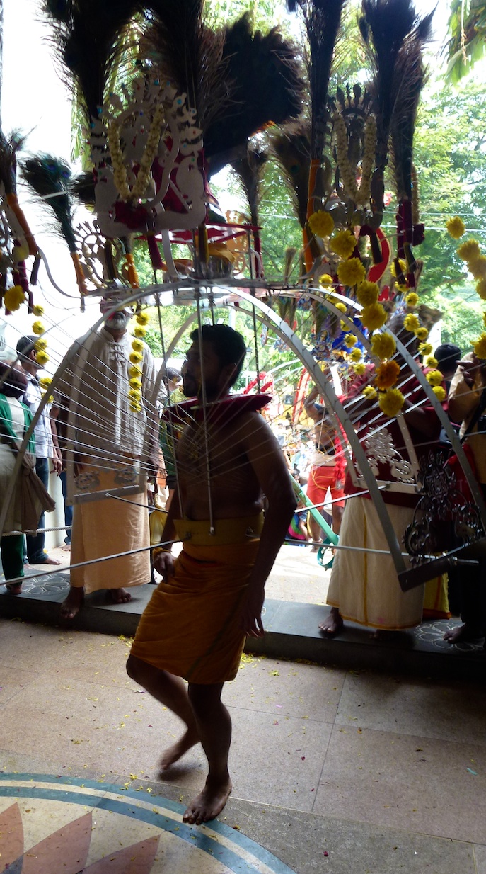 The photo below is near the end… you can see the exhaustion in Vans' face. It is very difficult when you reach the entrance of the final temple, as you have to wait in line for nearly two hours; the entire time the men countinue to support the heavy kavatis. Many men sat down on chairs, but Vans refused to rest. I thought for sure he was going to pass out – but he stayed strong. It was so amazing to experience this with him.