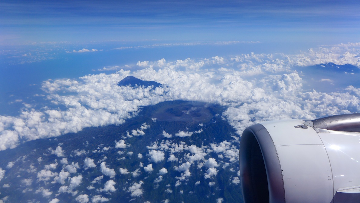 Notice the volcano we are flying over in the photo above, on our way to Bali.