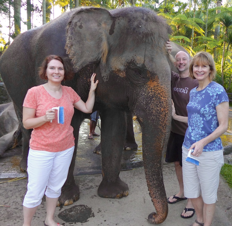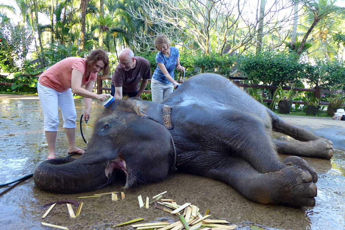 We started on dry land, scrubbing the elephants with brushes. And to say that the elephants enjoyed it was an understatement!