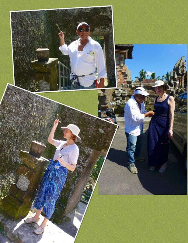 Showing respect by covering up and blessing ourselves before entering the temples.