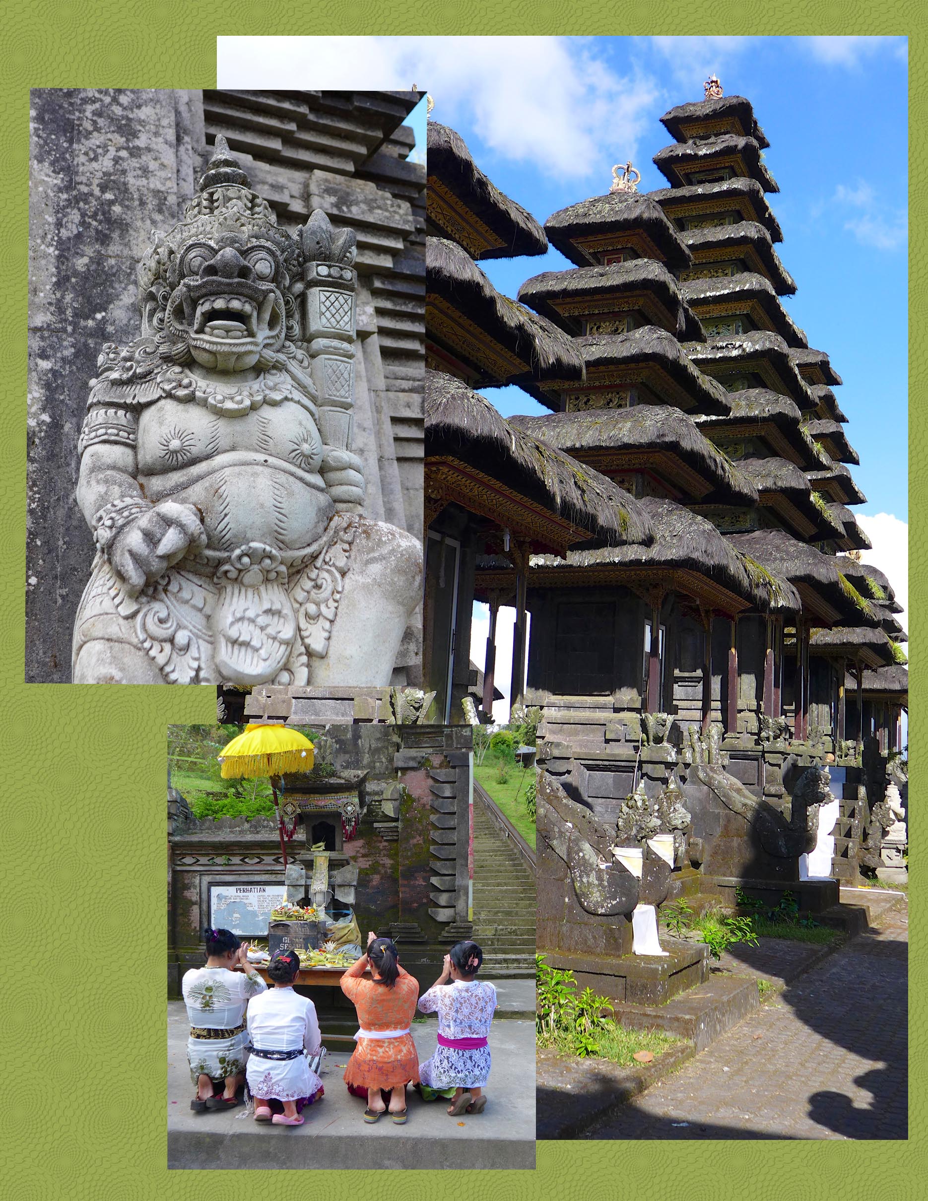 We hired a taxi driver/guide to take us around for the day. His name was Kadek. I mentioned that the owner of our Villa is also name Kadek… this opened the doors to a fascinating lesson on names.
