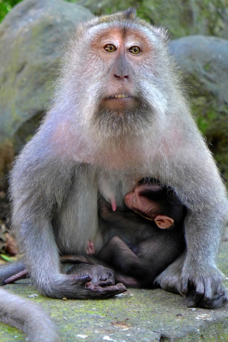 The macaques breed year-round. We saw many females carrying their babies, who are born, covered in black hair. They keep this until they are about 6 months old.